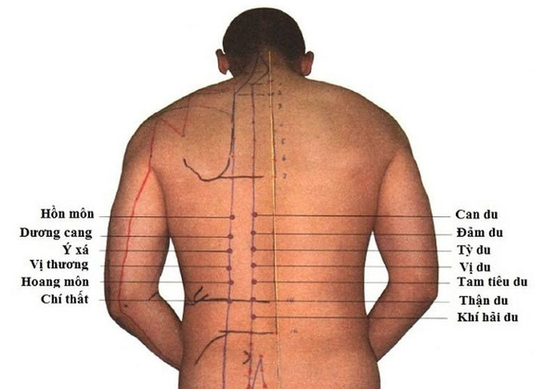- Bấm huyệt vị du: Huyệt vị du nằm tại vị trí dưới gai sống lưng 12 và đo theo chiều ngang 1.5 tấc. Áp dụng áp lực tại vị trí này có thể có lợi cho sức khỏe và giảm mệt mỏi.