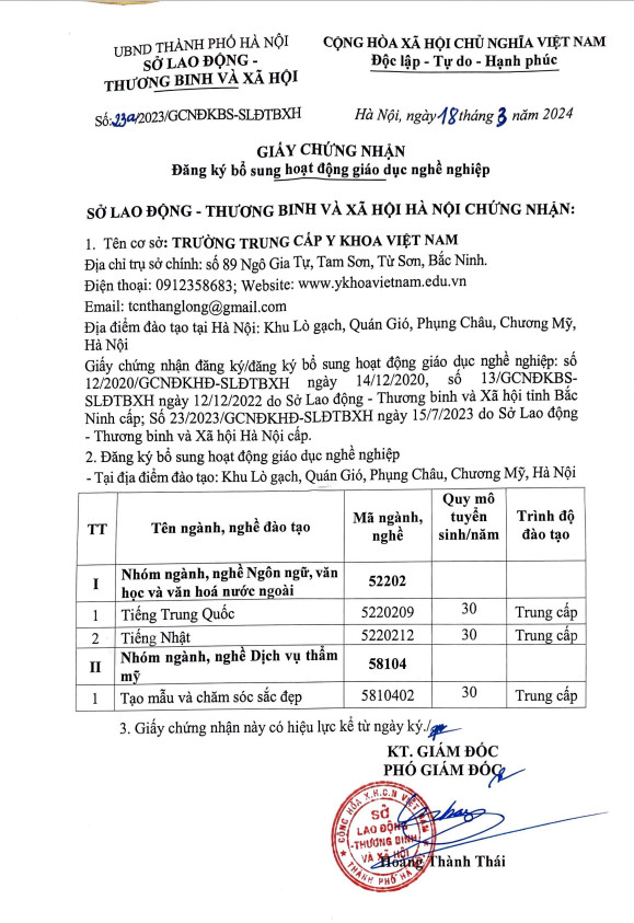 TRƯỜNG TRUNG CẤP Y KHOA VIỆT NAM