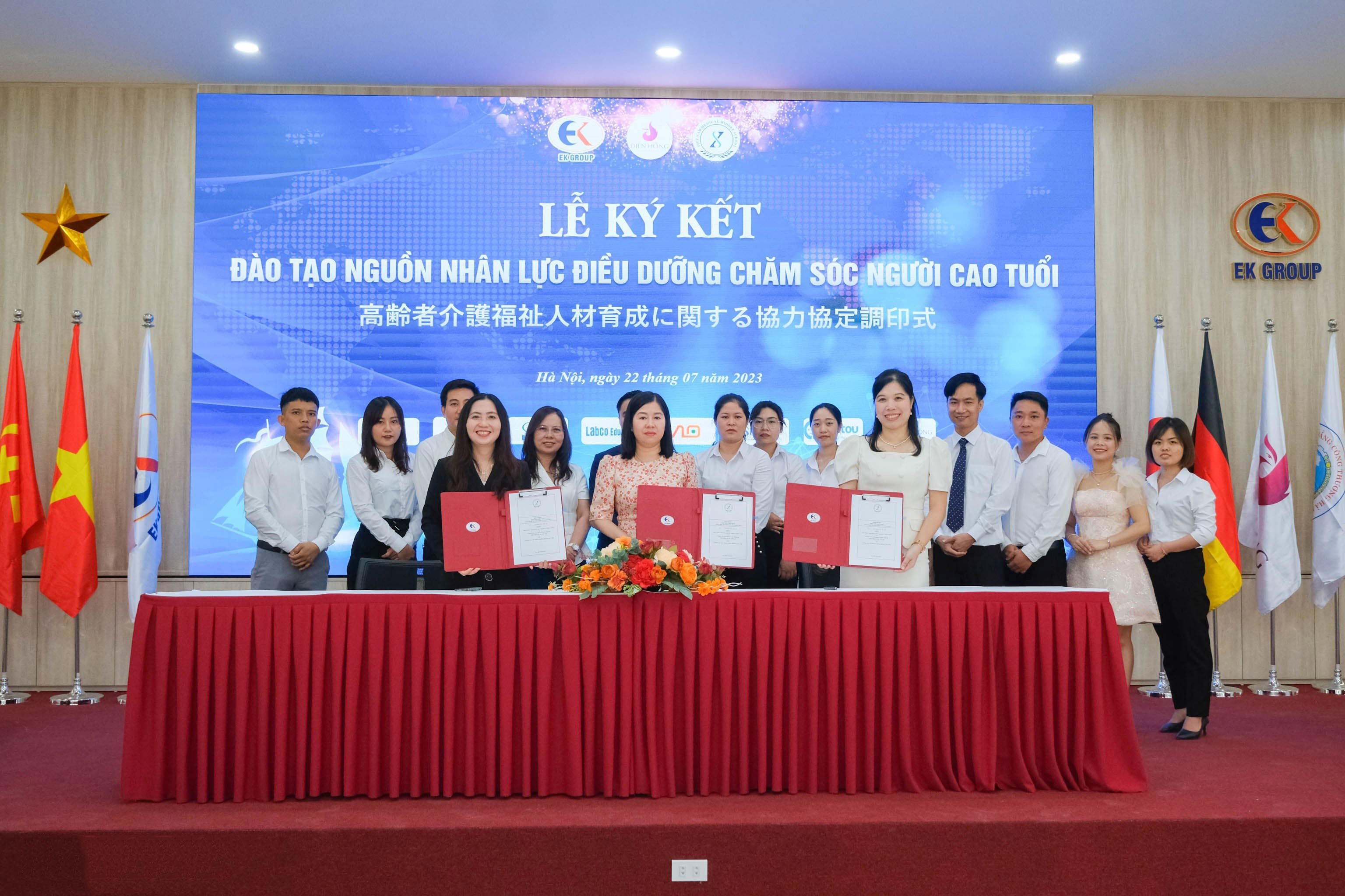Cụ thể, ngày 22/7/2023 vừa qua buổi lễ ký kết đã được diễn ra tại Khu Chiến Thắng, Thị trấn Xuân Mai, Huyện Chương Mỹ, TP Hà Nội. Các bên tham gia bao gồm đại diện lãnh đạo của Trường trung cấp Y khoa Việt Nam và Công ty Cổ phần Liên minh Tiến bộ Quốc tế EK, Công ty cổ phần Diên Hồng Hà Nội và đông đảo các cán bộ, nhân viên của các bên. Buổi lễ diễn ra trong không khí vui vẻ, phấn khởi và có sự giao lưu cởi mở của những người có mặt.
